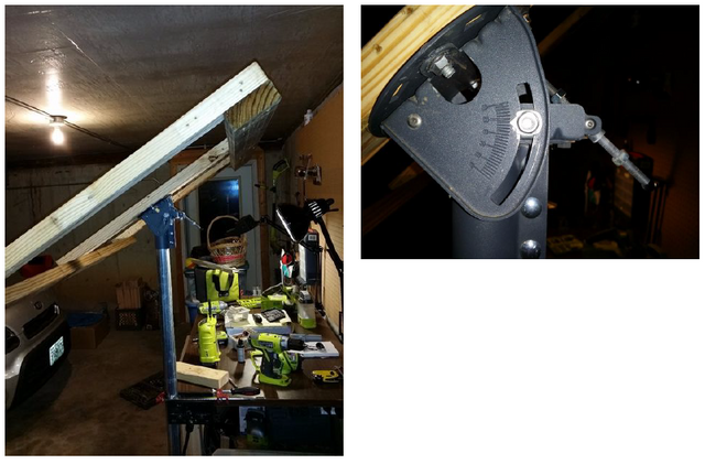 While Taking the dish out I noticed that the pipe was some pretty stout stuff and I could hang all 250 lbs of me from the arm of the dish without the pole flexing, hey the bracket is marked to indicate the angle the dish is pointed at. I wonder if I could reuse it for my solar panels? That was my eureka moment I was now determined to