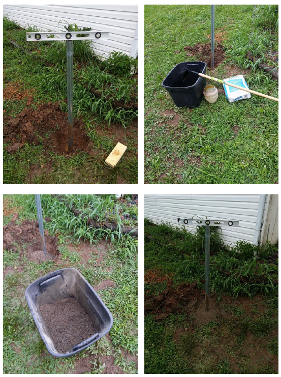 - Then I centered the pole in the hole and due to the waterlogged clay, it stood on its own accord.