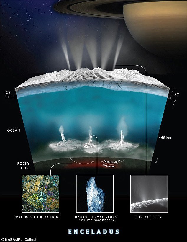In April, scientists announced that the Cassini space probe had discovered hydrogen on the Saturn moon of Enceladus, the 'missing ingredient' that could support microbial life on the seafloor of the icebound moon.