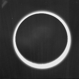 This image of Pluto once again shows the atmosphere along with some surface features. The dark side of Pluto was not observed during the New Horizons flyby, and we will not know what it looks like or what lies there until another mission is sent here.