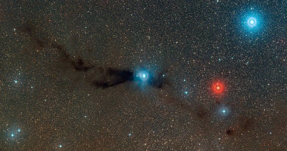 The most detailed composition made to date of the star formation region Lupus 3 shows a dark cloud of cosmic dust with the appearance of a deformed snake, illuminated by the bright light of the two new blue stars that center this spectacular image of wide field, informs EFE, citing a statement from the European Southern Observatory (ESO).