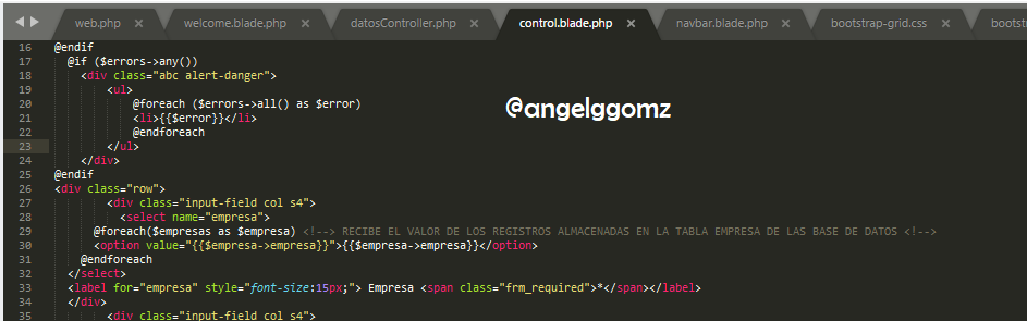 PD: En esta imagen solo se aprecian las sentencias principales del HTML de mi sistema, las otras están repartidas en otros documentos HTML. Esta practica se hace con la intención hacer un código reutilizable que evite la generación de código redudante.