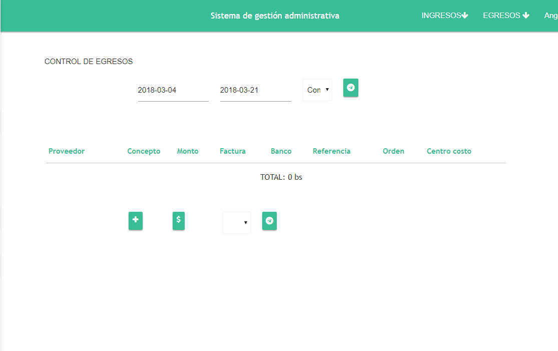 Interfaz al acceder al sistema, en la barra lateral también estaba el logo de la empresa por eso el espacio en blanco.