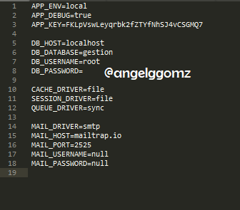 Conexión del sistema con la base de datos mediante las variables de entorno de Laravel.
