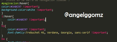 Una pequeña parte de los estilos propios del sistema. En la imagen están referenciados los textos de tipos h2 y h4 más la paginación del sistema.
