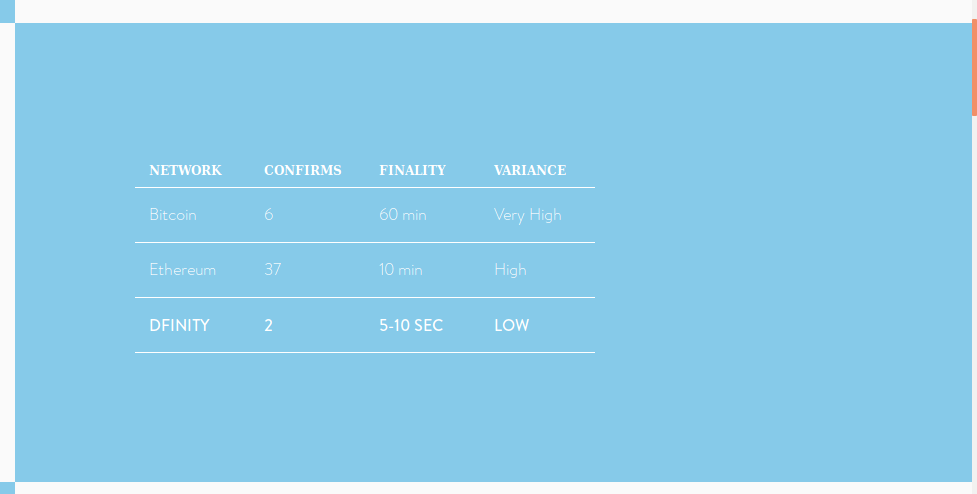 - Los nodos de la red además de crear los bloques en fracciones de segundos, tambien validan y certifican los datos, por lo que el proceso de computación es eficiente y se finaliza en segundos en lugar de minutos como Ethereum o horas como el Bitcoin.