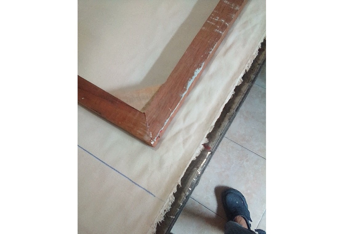 Ya con todas las partes cortadas, se miden y se unen verificando que encajan bien en las esquinas. Luego, con una grapadora industrial/tapicera, grape por detrás y por delante, para asegurar.