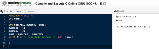 El siguiente codigo, va a realizar la suma de dos numeros: