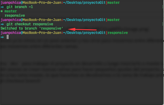 Como se ve en la imagen anterior hacemos un cambio desde nuestra rama principal master