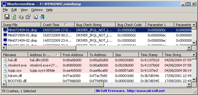 Then you can try to find out the source of the crash. A great tool for diagnosing BSOD failures is BlueScreenView. Simply download the ZIP version, open it and it should detect the dump file. Sometimes Windows fail at creating the dump file, but if you are lucky then an image like this will appear: