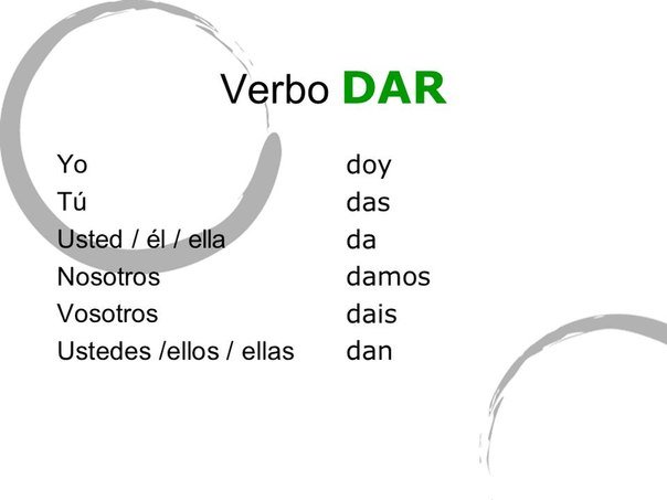 ellos/ellas/ustedes dan (they/you all (Latin America + Spain (formal)