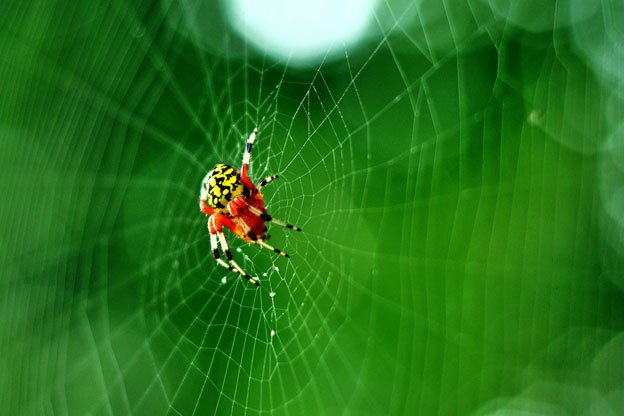 This morning, as I was sanding the railing on my deck, preparing to give it a new coat of stain, I noticed a large spider web next to the deck that was getting covered with dust from the sander. It didn't take long before the spider in the center of the web got annoyed and did something that surprised me. It dismantled its web. I wish I had taken the time to get out my phone and shoot a video because it was fascinating. The spider carefully snipped each short connecting strand from the long anchor strands and then deliberately rolled the anchor strands into a ball, dropping the ball every once in awhile as it got too big to hold. When it was finished, the web was completely gone. Later in the day, I asked myself why a spider would go to the trouble of dismantling its web before moving to the next spot. The only reason I came up with is to suppose that the spider knows that an abandoned web, even one covered with dust, might catch unwary insects, reducing the spider's potential pool of victims. Later, my sister pointed me to a web site that had a better explanation: http://indianapublicmedia.org/amomentofscience/spiders-recycling/