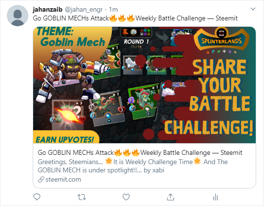 You have been manually curated by the @splinterlands / @steemmonsters team for the SHARE YOUR BATTLE WEEKLY CONTEST!
