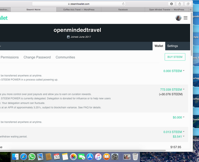 Since I am already fully powered up, here is a screenshot of my Wallet showing my current STEEM power as of 11:00 on June 30th. When I begin the actual contest tomorrow, I will show a beginning and ending screenshot showing my gains.