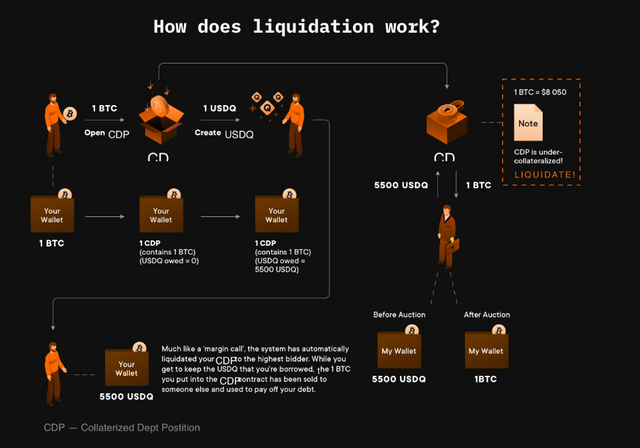 Worry no more because with USDQ, after you have changed your BTC to USDQ, the price per each USDQ is pegged to 1 dollar so that's why you will be more assured of that what you have estimated in number of altcoins in mind when exchanging with your USDQ will remain the same. Amazing right!You may execute CDP--> Collateralized debt positions is the meaning of CDP. It was created by the QDAO team with alongside the power of trustless or also called as 'smart contracts'. With CDP, you may deposit your volatile cryptos and receive/mint USDQ to be traded or just hold it no problem. This CDP also has automatic liquidation if ever there was an under-collateralization happening in the account of the one who made the transactions. It is automatically balancing or finding the equilibrium and auto-liquidation for the safety of the system as well as the holder of the USDQ. I never find something as interesting as this one and useful for traders, investors and for transactions in the blockchain!