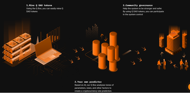 --> As we mine QDAO tokens with the use of QBOX, depending on the number of what you hold in QDAO and the moment you can input the information that you have as a heavyweight voter in the QDAO blockchain, the QBOX will automatically scans any trading systems that other traders and market movers do as well to make a prediction as accurate as how the market trends or moves along with the cryptocurrency rates.