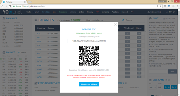 We will now navigate back to the Yobit Exchange. You should have a BTC balance, which we can use to purchase our Coins (Buzz Coin).