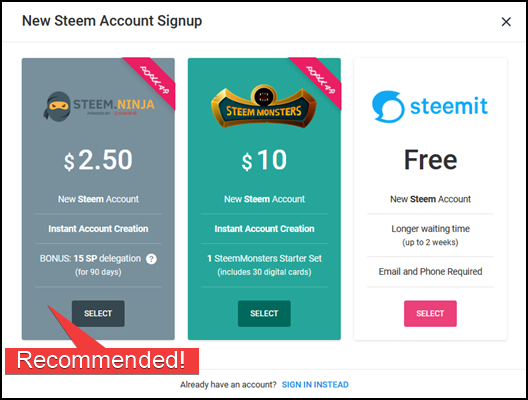 Of course it is also possible to create a free account on the Steem blockchain, but free accounts need to be approved first, which could take quite a lot of time. Creating a new account through Steem Monsters might be a good option for you, if you are looking to play the Steem Monsters trading card game on the Steem blockchain.
