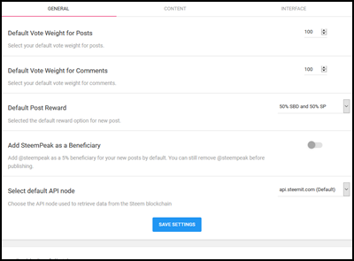 The number of tweaks that you can perform to change your experience on SteemPeak is nothing short of amazing. When you go to your account settings, you'll see that you're able to completely change how SteemPeak looks and performs. Most of these settings are only available on the SteemPeak DApp and they're part of the reason why I'm referring to SteemPeak as the Steem interface for power-users.