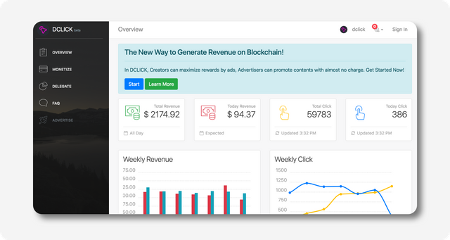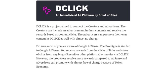 This is a very great project with its own story that functions well according to what I have seen and according to my own experience. This is my experience with dclick with total of 68 clicks on the ads from my own posts but you can see my rewards too, it is well-paying platform.