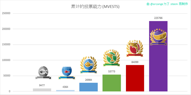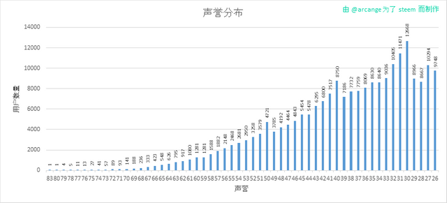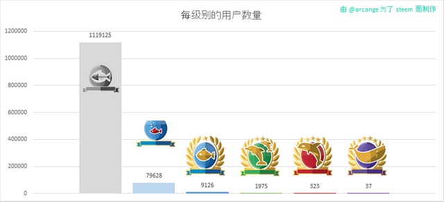 这个图表显示了和用户投票能力相关的用户数 (这包括了新注册但未活跃的用户、还有 "Red Fish"级别,请查看 @steemitboard 了解更多的信息)