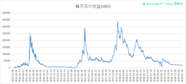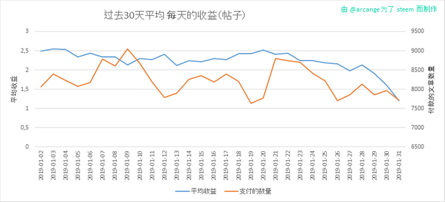 这些图表显示了每一天在帖子和评论上的收益分配情况。