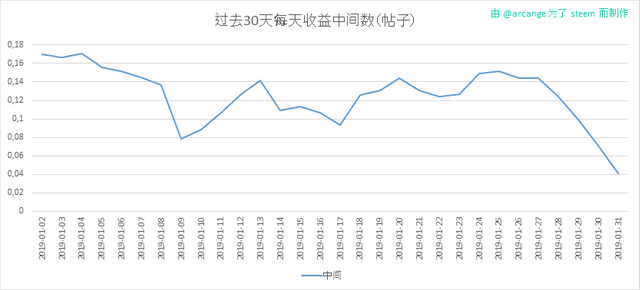 这些图表显示了过去30天内每篇帖子的平均和中位数收益。最后一个图表也许意味着:如果昨天你获得了图标上最近的数字,你应该高兴,因为和你一样挣一样多的用户并不比你多。
