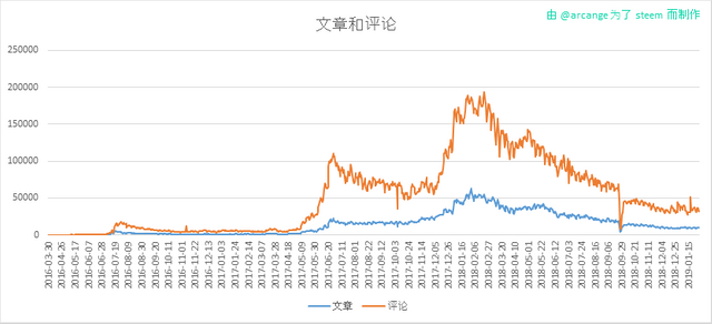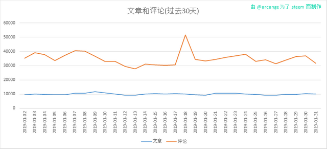 这些图表显示了过去30天内整个区块链上的帖子和评论的演变情况。