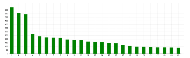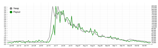 This is a breakdown of post payouts per percentile. Only top 25% of post payouts are visible on the chart.