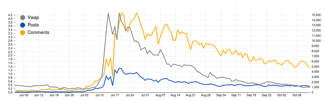 Yeah, you are right: number daily created posts and comments is trending down for a while. The trend is more pronounced for comments than posts.