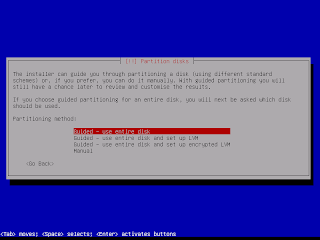 In the partitioning method, select the Guided-use entire disk to make the entire hard drive a partition. If you want to set up more or make more than one pastake, you can choose manual.