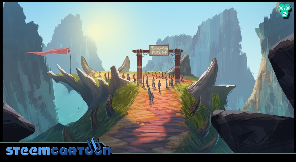 First, I start with some rough sketch by following the script from the flow of the story. This scene I am required to create a battle ring in a mountainous area.