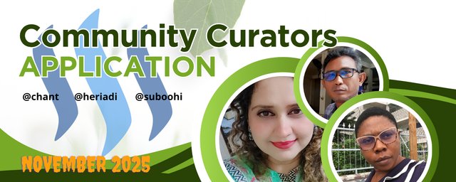 We have formed a team of three to apply as community curators for November2025, each team member is committed to working honestly and fairly in rewarding every quality content, of course according to the basic rules set by the Steemit Team.