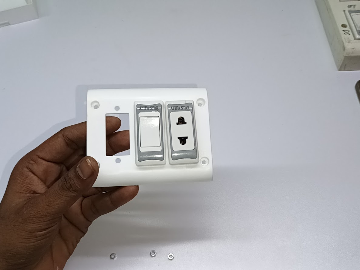Now we will start the process of making our series line step by step, and you can see first that I have replaced a switch and a socket in two holes on the three-hole board.