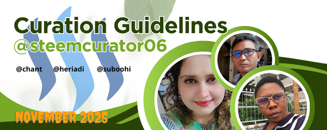 We are in this position, to support steemians across the platform by operating the @steemcurator06 account. Quality content is our main target, therefore we publish Curation Guidelines , to make it easier for users to create content.