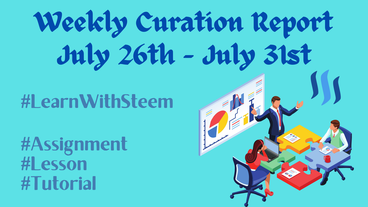 We #Sevengers hope that all of our fellow Steemians are doing wonderfully well. We will like to extend our special thanks to the "Learn with steem" authors who have been with us these few months. Today we present the final curation report for the month of July covering the curation done between 26th July to 31st July. We selected the #learnwithsteem curation topic and searched for #lessons, #tutorials, and #assignments in this category to support them.