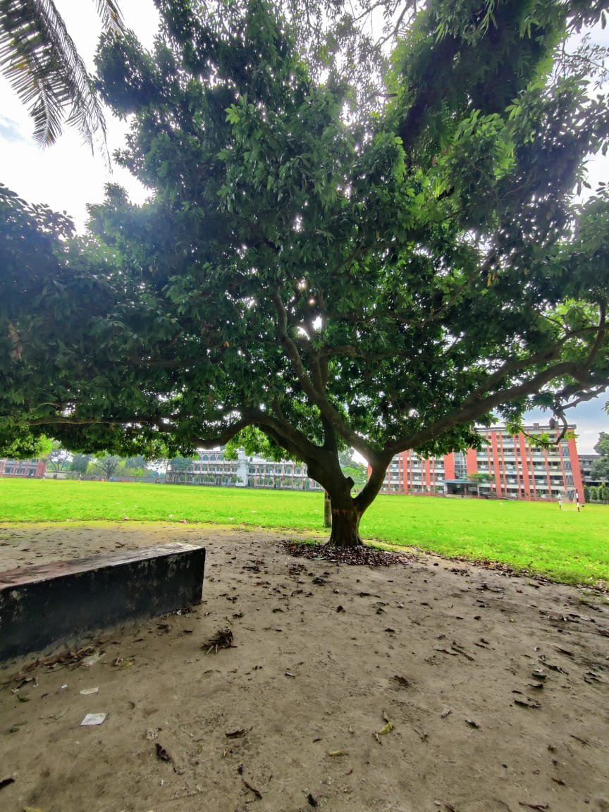 In front of the campus building, there is a field, and in front of it, there is a tree like this banyan tree, which makes the place look even more beautiful. People sit there and enjoy watching the games played on the field. It was a very nice and beautiful place. The campus office was good, clean, and well-maintained.
