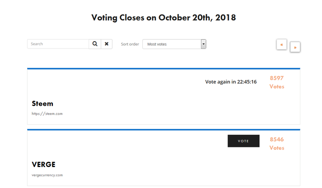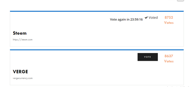 We have taken the lead again! We have to keep voting whenever we can! I'm suspicious that a bot could be behind Verge's Huge Increase In Votes Over Night, so we will need all voters to keep on voting on the site: