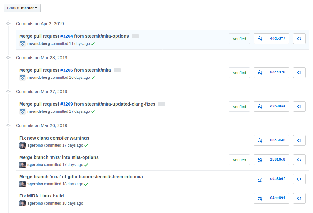 But now I thought: are the stats showing only main line of code on master? Let's see steem's branches: