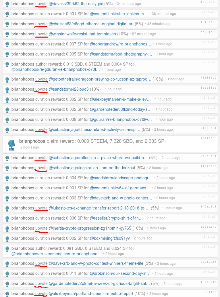 Hi @brianphobos. I thought you might appreciate a reply. I am one of the ones with some auto votes on, I can only afford to do a few because my power gets drained pretty quickly and get left with upvoted worth nothing for thing I come across that I like. My husband on the other hand is pretty against bots and autovoting so he sticks to lovingly curating by hand. That means some days he is busy and doesn't vote at all. I suspect many 'genuine' users (i.e. those that are here for the community and the content) feel like that.