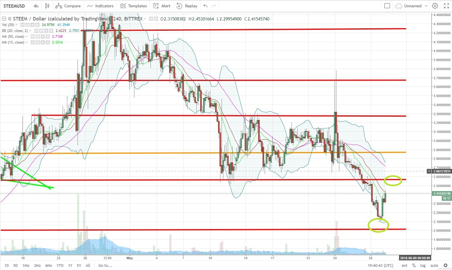 As the BTC did, we just had a little correction, the UP was not able to continue the move. I think this little correction is just a pause and that the UP will come back to go test the resistance line at 2.55$. This line must be broken to confirm the bounce which started yesterday. Take some popcorn and wait this confirmation. It is too early to start already a trade.