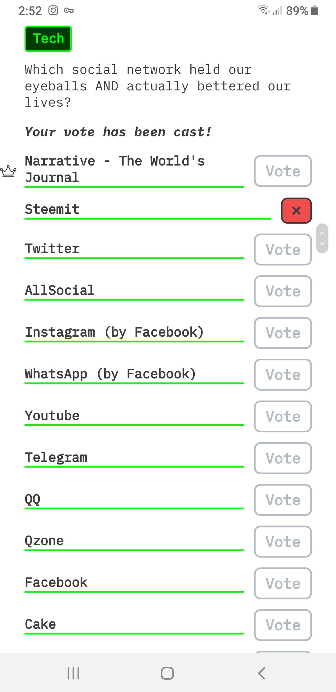 You are viewing a single comment's thread from:RE: Go vote for Steemit as "Social Network of the Year," on HackerNoon's "The Noonies," awards!!!View the full contextdavidfar (70)in #steem • 6 years ago (edited)Cool, I'll be there Done