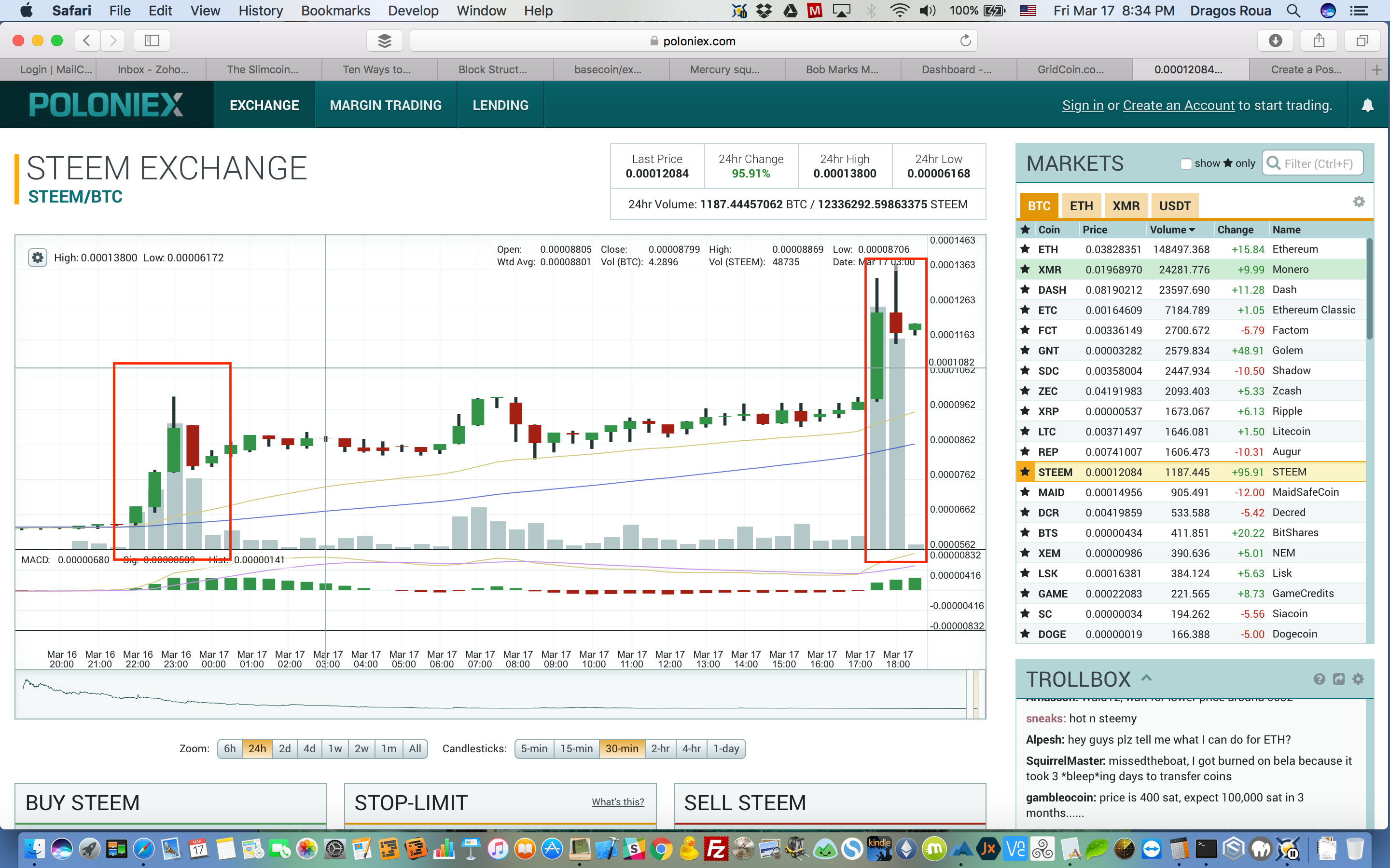 Speaking of coincidences, the Steem price pump started exactly 22 hours ago, with a volume of more than 250BTC in Poloniex only, for a 4 hours window (that's almost 300k USD in 4 hours). The current pump window started a little more than an hour ago, on a volume of more than 400BTC on Poloniex only. Whoever is pumping has some very deep pockets. I have a few theories, but no fact, so I won't say anything. Just have a look at the chart.