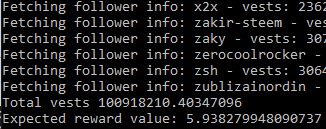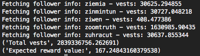 print("Fetching follower info: %s - vests: %s" % (follower, follower_vests))