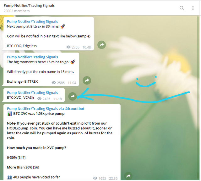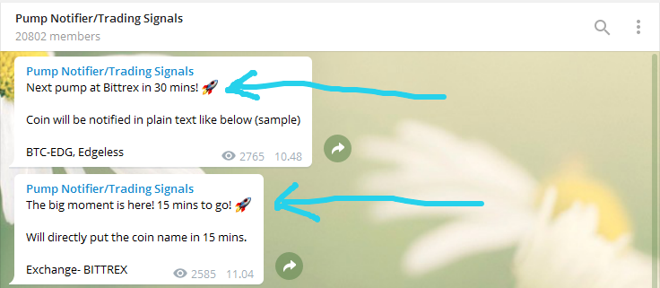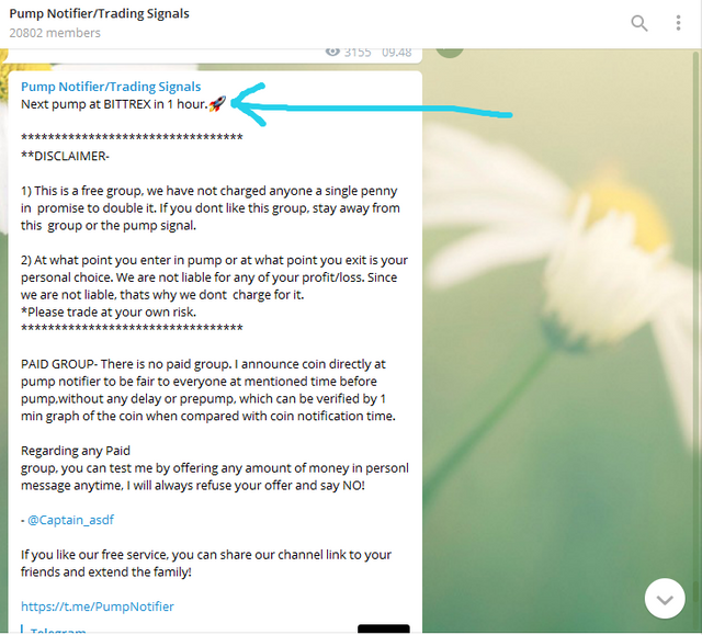 if it's time to arrive, we will be told what coins will be pumped and at that time we have to go to the trading page of the coin which is informed by the channel. See the picture below.