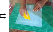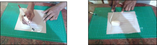 Around the cardboard should be a piece of cloth about 2 cm approximately that will double and make it firm to the lining (This step can be done with the help of a silicone spatula).