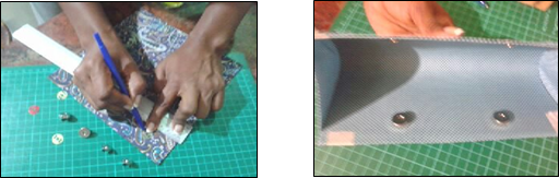 To place the magnetized brooches we must measure with a ruler 6 cm from the edge of the side of the internal part inwards, then 2 cm from the top edge down, we indicate with a ballpoint pen or marker a point to indicate the location of the brooch, this Procedure is done on both sides when our wallet carries two pins.