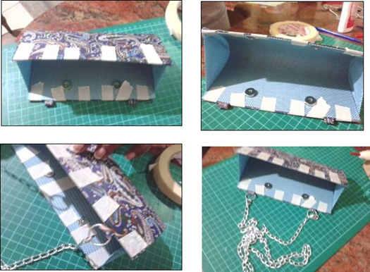 Finally we put enough white glue to stick the two parts of the wallet, first we close the inner part with its clasps and facing the sides of the wallet we stick and hold the edges with tirro, we wait between 6 or 8 hours for drying depending on climate of the place where you are.