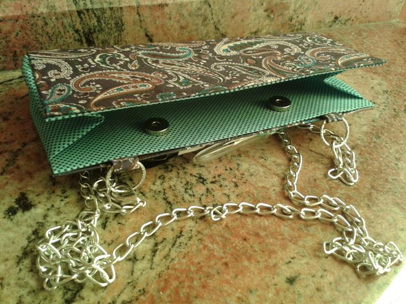 At this moment we must decide if we want the wallet model to have a chain to hang, then we put two strips of the same fabric bent about 2 cm from the location of the pins, which will allow to place the rings and the chain.