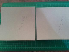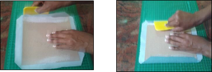Once the folded sides of the fabric are glued, the cardboard is turned over and the silicone spatula is passed, ensuring that the fabric is fully stretched (without bubbles and without wrinkles). This step is repeated for both rectangles.
